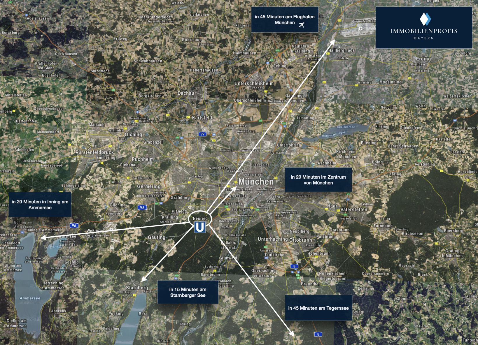 Alle notwendigen Einrichtungen des täglichen Bedarfs sind in Neuried selbst in unmittelbarer Nähe verfügbar, von Ärzten und Banken bis hin zu Supermärkten und Tankstellen. Zahlreiche Sport-, Kultur- und Traditionsvereine bieten den Bewohnern vielfältige Möglichkeiten, sich zu engagieren und das Gemeinschaftsleben aktiv mitzugestalten. Naturfreunde werden von der Fünf-Seen-Region (Ammersee, Starnberger See, Wörthsee, Pilsensee und Wesslinger See) vor der Tür begeistert sein. Zudem kann der Forstenrieder Park erkundet werden, das sich ideal für Wanderungen und Radtouren eignet.