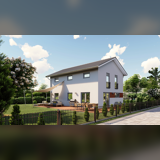 Modernes Wohnen auf zwei Ebenen. Dabei sorgen die großen Fenster für lichtdurchflutete Zimmer in Ihrem neuen Traumhaus.