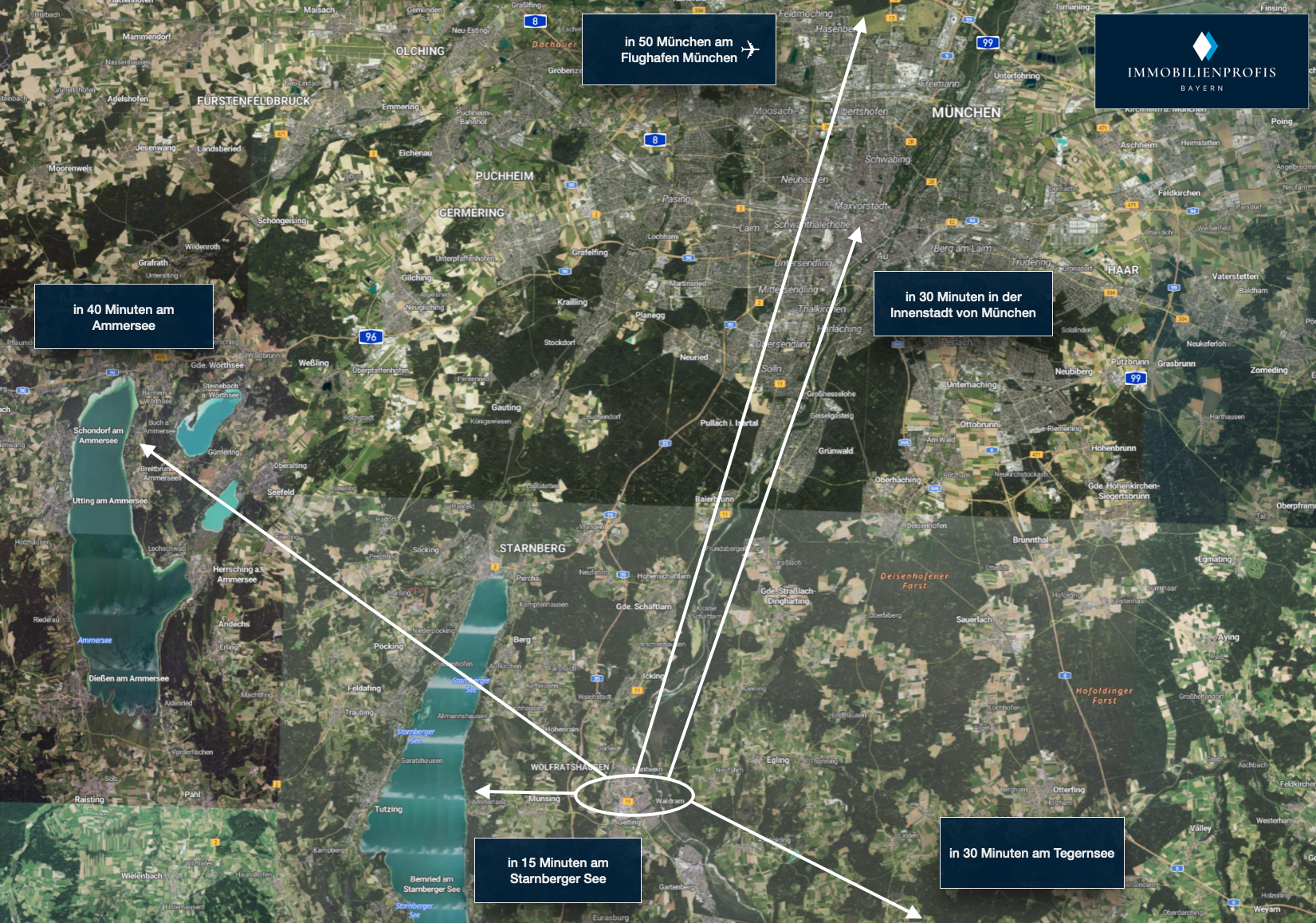 • ca. 10 Fahrminuten zur S-Bahn-Station Wolfratshausen – in ca. 40 Minuten direkt am Münchner Hauptbahnhof!