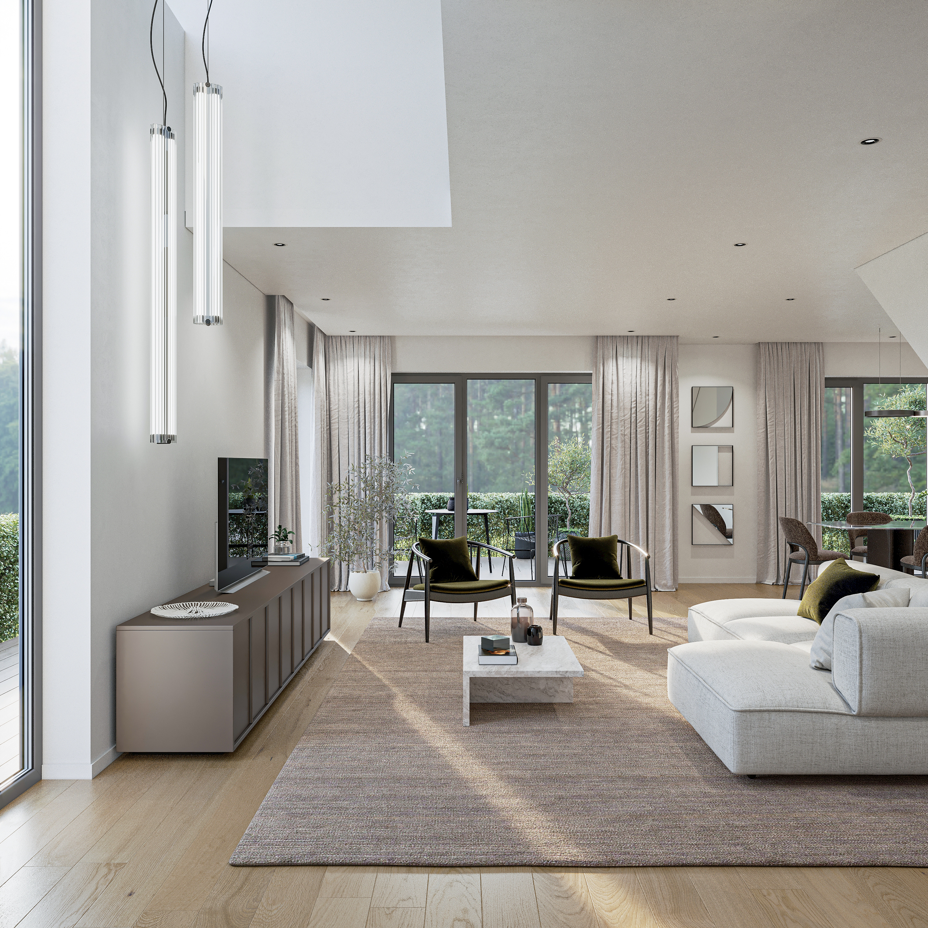 Einrichtungsgegenstände und Bodenbeläge (außer Fliesen in Bad und WC) sind nicht in unserer Leistung inbegriffen und separat zu bestellen.