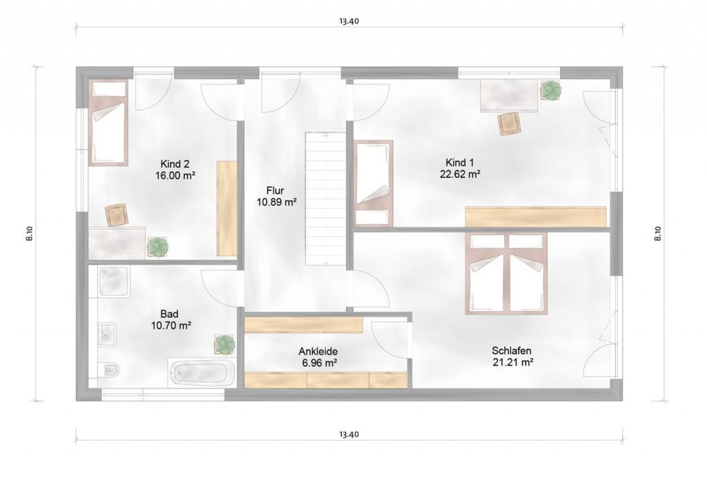 Bauhausarchitektur mit klaren klassischen Strukturen und zeitlose Eleganz. Dabei begrüßt Sie Ihr neues Traumhaus im Erdgeschoss mit über 90 m², mit einem modernen, offenen und großzügigen Wohnen. Eine Treppe weiter oben, geht das Träumen und Wohlfühlen weiter. Denn mit knapp 163 m² Gesamtwohnfläche hat auch jedes Familienmitglied genug Fläche für seinen ganz persönlichen Rückzugsraum. Gerne passen wir das Wohnkonzept „Amsterdam“ auf Ihre ganz persönlichen Wünsche an.