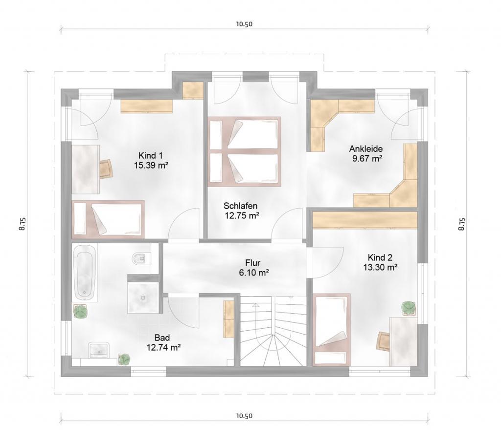 Unser Designhaus „Kopenhagen“ in der modernen Variation mit einem Pultdach ist eine echte Alternative, wenn die Bauvorschriften keine reine Bauhausarchitektur zulassen. Klassische Architektur gepaart mit modernen Stilelementen, lassen Ihr neues Haus zum Hingucker werden. Die funktionellen Grundrisse im Erd- und Dachgeschoss runden dabei das Gesamtpaket auf 140 m² Wohnfläche ab. Dabei sind die Grundrisse noch variabel und können an Ihre Wünsche und Bedürfnisse angepasst werden. Für alle, für die es nicht ganz so groß sein muss, kleiner geht auch. Sprechen Sie einfach mit Ihrem Haus-Bau-Experten über Ihre Träume und Wünsche.