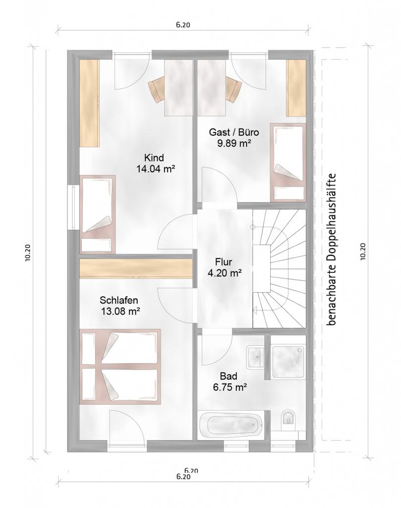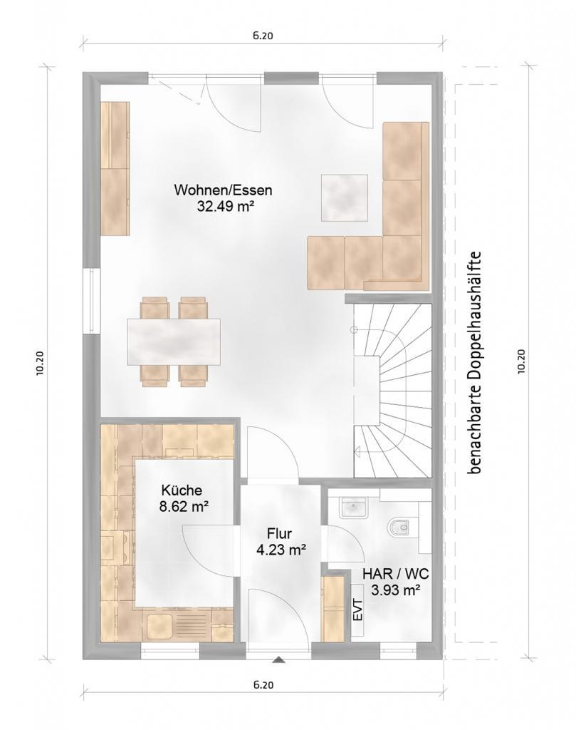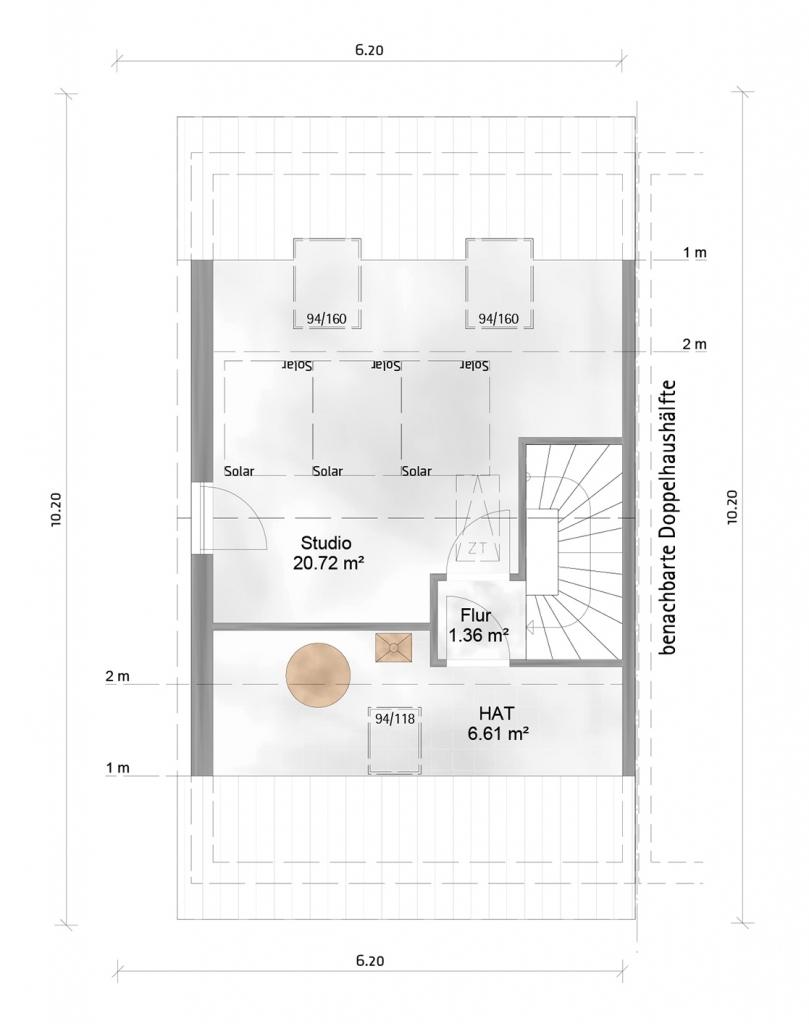 Unser Konzept: Modernes Wohnen auf drei Ebenen. Die Wohnebene mit dem großzügigen Wohn-Ess-Bereich sowie die Küche finden Sie im Erdgeschoss. Dieses wird ergänzt durch den Hausanschlussraum. Wie Sie die zweite Ebene mit drei Zimmern und Ihrem Bad nutzen möchten, dass entscheiden Sie selbst. Im Dachgeschoss befindet sich Ihre dritte Wohnebene. An dieser Stelle können Sie sich voll entfalten, ob Arbeitsbereich, Gästebereich oder ein kleines Apartment für die großen Kinder, Ihnen stehen alle Optionen offen.