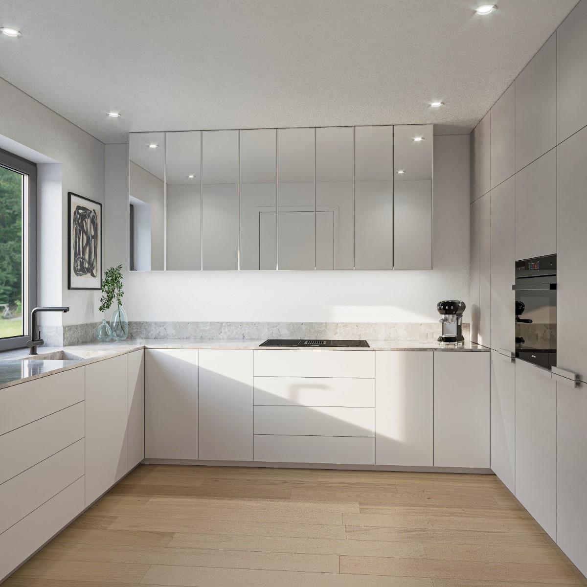 Unser Konzept: Modernes Wohnen auf drei Ebenen. Die Wohnebene mit dem großzügigen Wohn-Ess-Bereich sowie die Küche finden Sie im Erdgeschoss. Dieses wird ergänzt durch den Hausanschlussraum. Wie Sie die zweite Ebene mit drei Zimmern und Ihrem Bad nutzen möchten, dass entscheiden Sie selbst. Im Dachgeschoss befindet sich Ihre dritte Wohnebene. An dieser Stelle können Sie sich voll entfalten, ob Arbeitsbereich, Gästebereich oder ein kleines Apartment für die großen Kinder, Ihnen stehen alle Optionen offen.